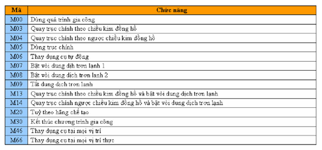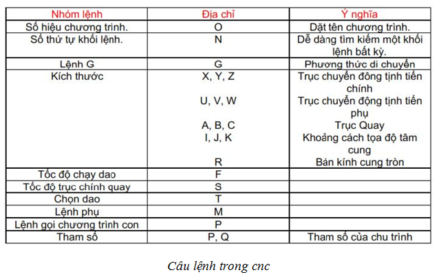 Các mã lệnh, các câu lệnh trong máy tiện cnc
