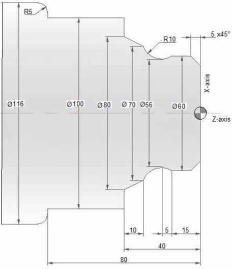 G54 G0X40. Z5.; (Chạy nhanh đến vị trí)