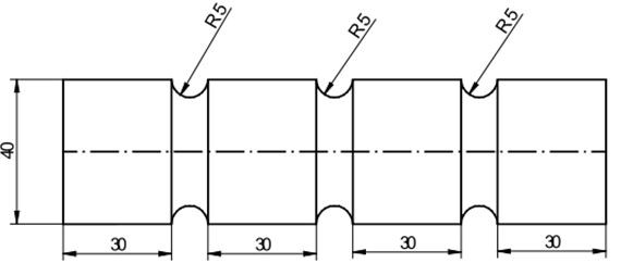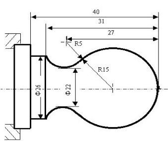 G02 X26.Z-31. R5.; (Cắt cung R5)