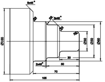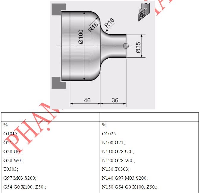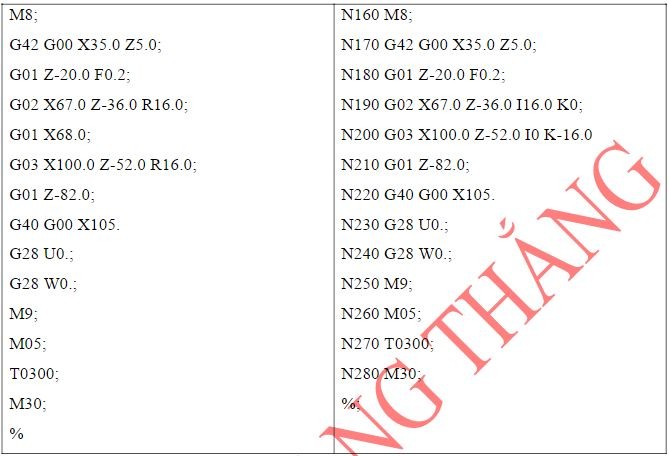Chú ý: Với chương trình này, khi mô phỏng trên Cimco sẽ không mô phỏng chỉnh xác đường chạy dao. Tuy nhiên khi mô phỏng trên phần mềm SSCNC, đường chạy dao sẽ chính xác như bản vẽ thiết kế.