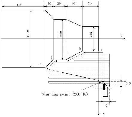 N170 G00 X105 Z2 N180 G71 U2 R1 F200;