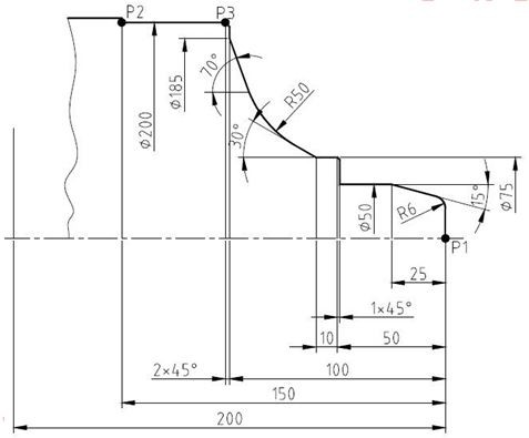 N200 X50 Z-25.,A165; (Góc thứ 2: A165(180°-15°=165°))