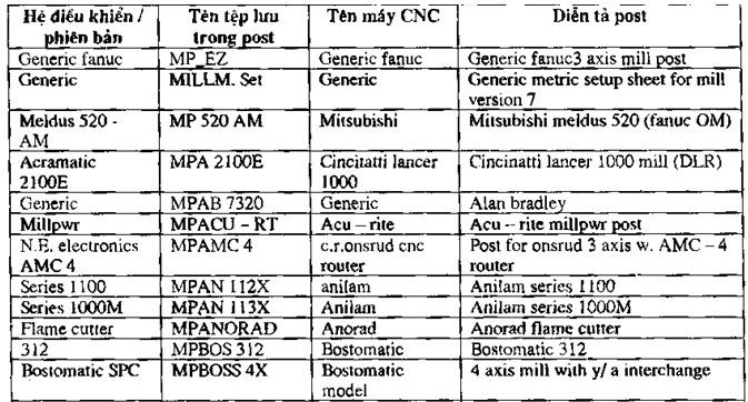 1/Change : đổi post theo hệ điều khiển của máy CNC: