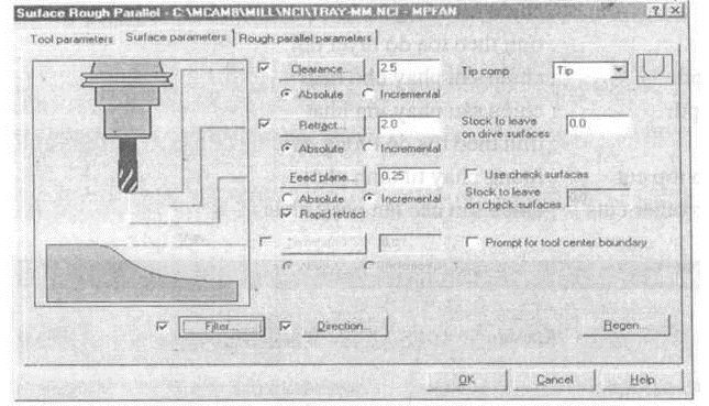 Trình đơn : Main Menu -> Toolpaths —> Surĩace