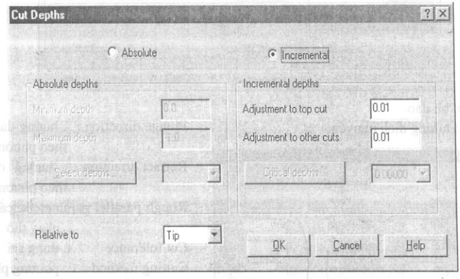 Adjustment to other cuts: chiều sâu các lần phay khác.