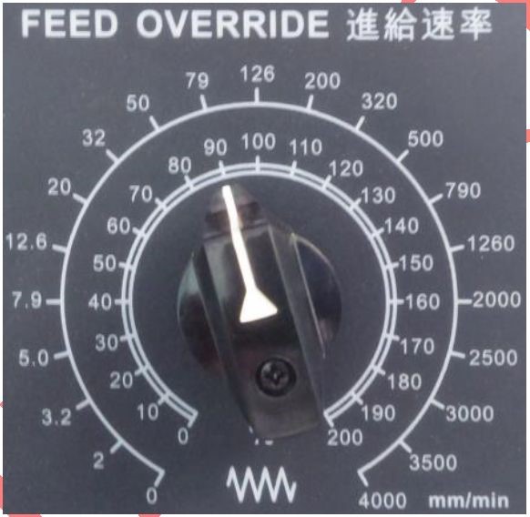 – Khi vận hành máy ở chế độ bằng tay JOG, công tắc FEED OVERIDE dùng để diều chính tốc độ di chuyến trục từ (0 ~ 4000 mm/phút)