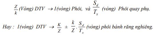 Quan hệ trên chính là lượng di động tính toán để điều chỉnh xích phân độ trong phương pháp điều chỉnh không vi sai gia công bánh răng nghiêng. Từ đó nhận được công thức điều chỉnh xích phân độ: