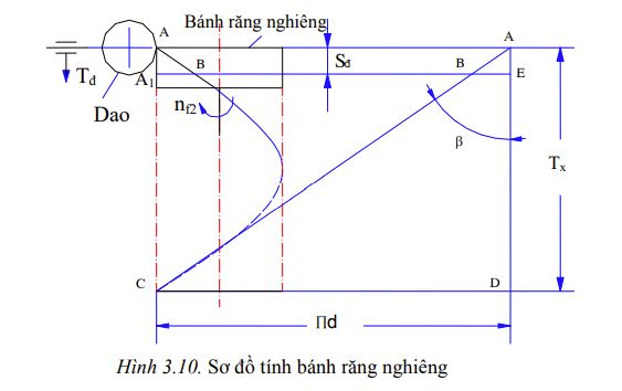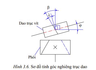 Trong đó: β- Góc nghiêng đường răng trên mặt trụ chia của bánh răng; λ– Góc nâng đường ren trên mặt trụ chia của dao trục vit.