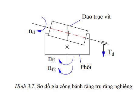 nd : Chuyển động quay của dao trục vít, tạo ra tốc độ cắt chính và tốc độ bao hình trong quá trình gia công bánh răng nghiêng