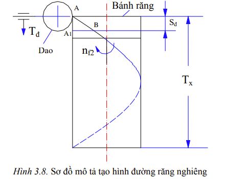 Trong công thức (3.3), dùng dấu trừ khi đường răng của bánh răng cùng chiều xoắn với đường ren của dao trục vít và dùng dấu cộng khi đường răng của bánh răng khác chiều xoắn với đường ren của dao trục vít.