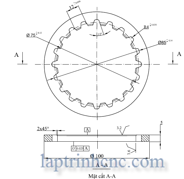 Đĩa ly hợp được gia công có thiết kế như hình vẽ dưới đây: Hình 1 Bản vẽ chi tiết gia công Thông số của răng – Số răng: Z = 20 – Mudul: m = 4 -Bước răng: p = 12 – Hệ số dịch chỉnh: ζ …
