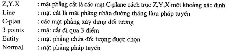 Xuất hiện các lựa chọn mặt phẳng cắt bề mặt đã chọn:
