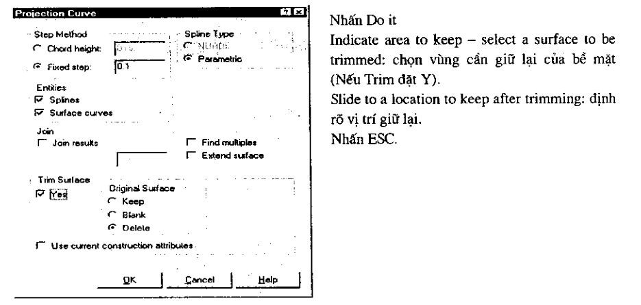 Select a solid face: chọn bề mt của khi cần vẽ đường Curve, các bước tiếp giống ở trên.