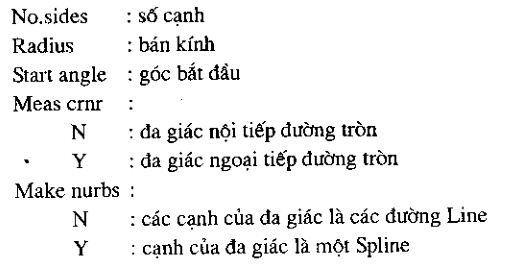 Radius : bán kính đường tròn ngoại tiếp đa giác (Measure radius to comer được kích hoạt)